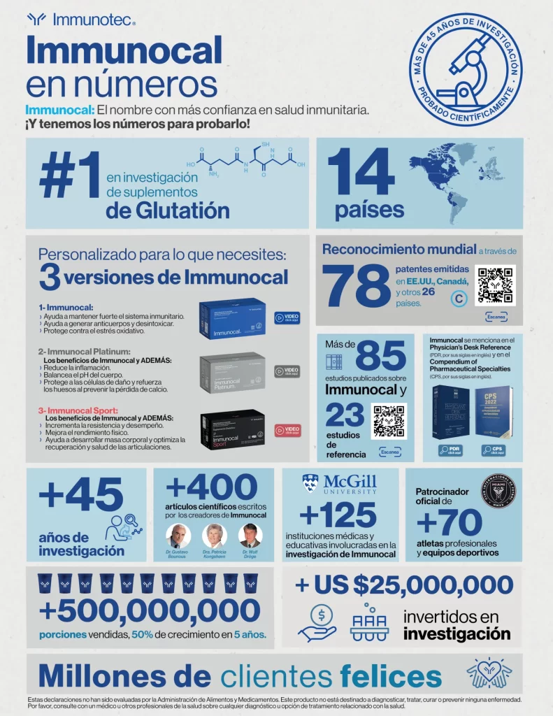 45 años de investigación y 401 artículos escritos por los creadores de Immunocal nos respaldan. Su investigación condujo a grandes avances en los terrenos de la comprensión del sistema inmunológico.